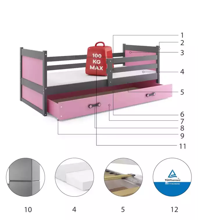 Sertifikuota lova – kokybė ir saugumas atitinka TUV standartus.
