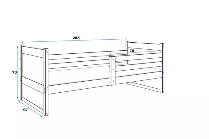 RICO viengulė jaunimo lova 90×200 su čiužiniu, pušis/grafitas