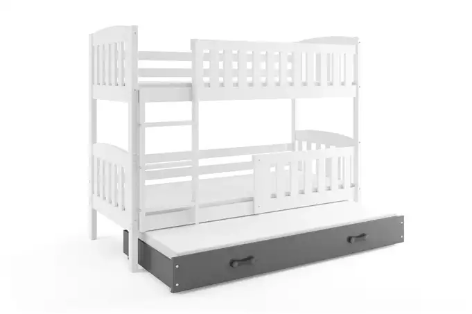 KUBUŚ trijų asmenų jaunimo lova 90X190 su čiužiniu ir stalčiumi, balta/grafito spalvos