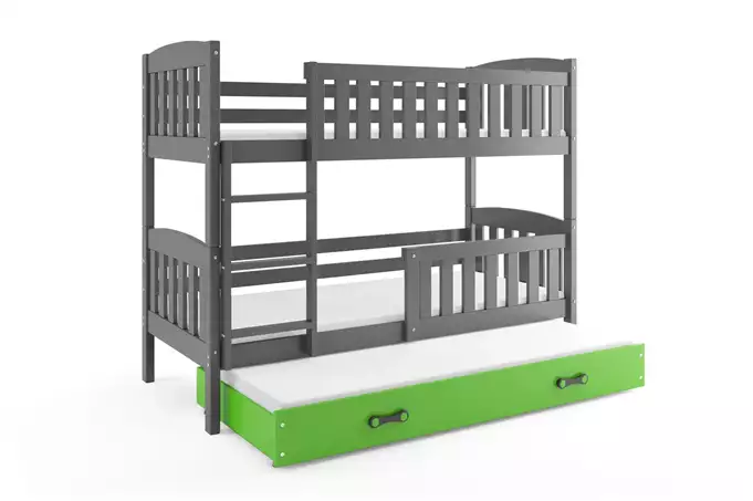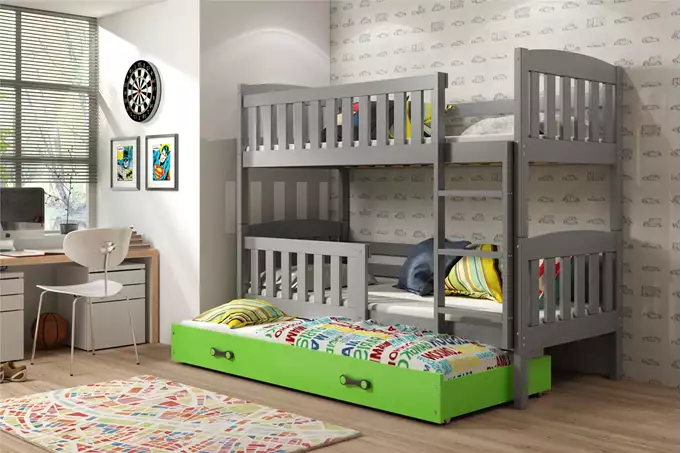 KUBUŚ 3 asmenų jaunimo lova 90X190 su čiužiniu ir stalčiumi, grafito/žalia