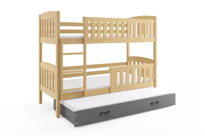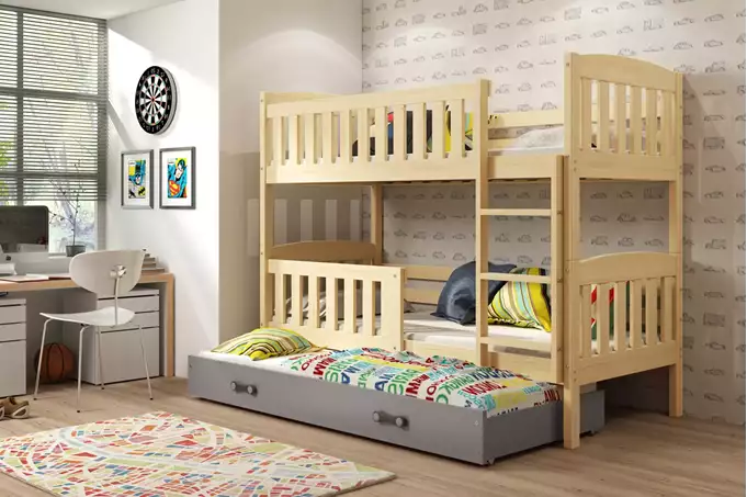 KUBUŚ 3 asmenų jaunimo lova 90X190 su stalčiumi, pušis/grafitas
