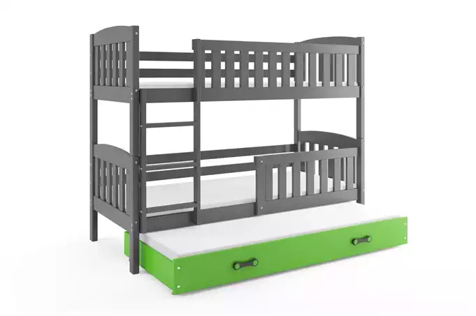 KUBUŚ 90X200 trijų asmenų jaunimo lova su čiužiniu ir stalčiumi, grafito/žalia