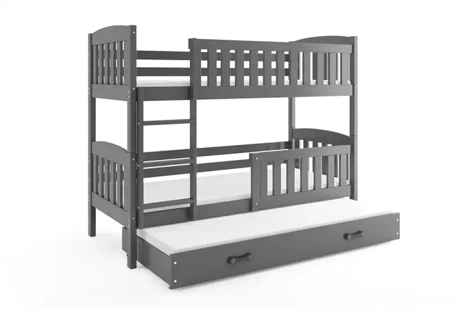KUBUŚ 90X200 trijų asmenų jaunimo lova su čiužiniu ir stalčiumi, grafito spalvos