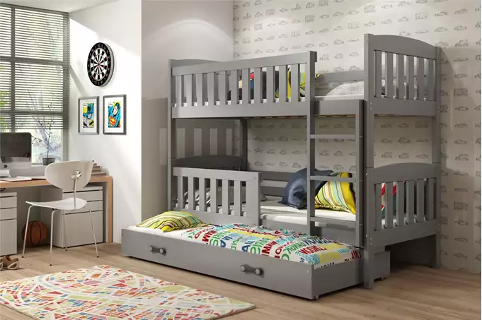 Būkite pirmas aprašęs “KUBUŚ 90X200 trijų asmenų jaunimo lova su čiužiniu ir stalčiumi, grafito spalvos”