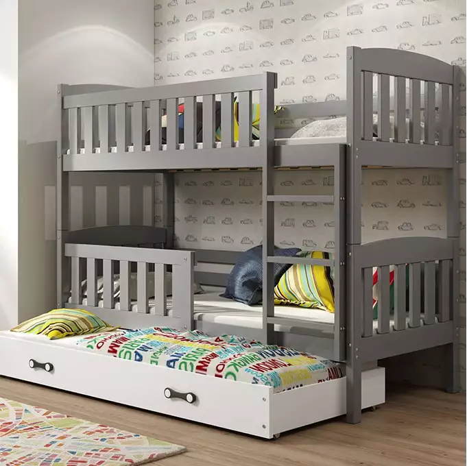 KUBUŚ 3 asmenų jaunimo lova 90×200 su stalčiumi, grafito/balta