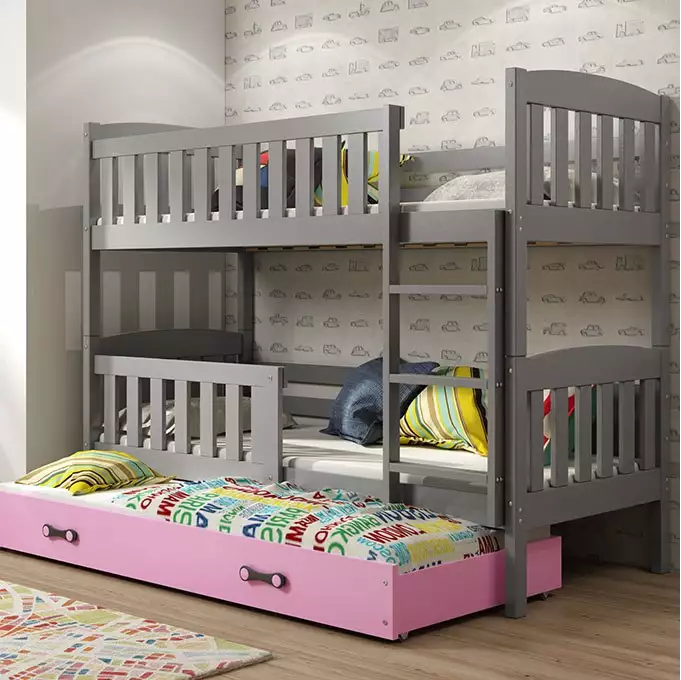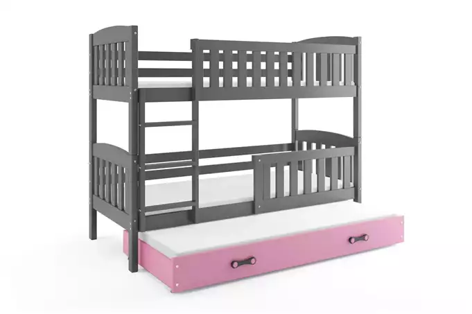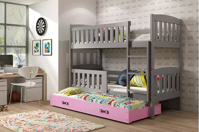 KUBUŚ 3 asmenų jaunimo lova 90×200 su stalčiumi, grafito/rožinė