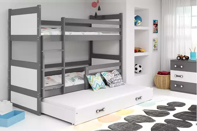 RICO 90X190 trijų asmenų jaunimo lova su stalčiumi, grafito/balta