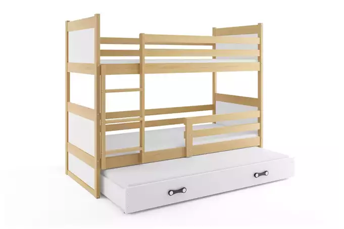 RICO 90X200 trijų asmenų jaunimo lova su čiužiniu ir stalčiumi, pušis/balta