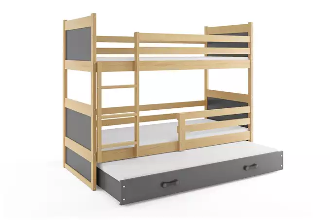 Lovos rėmas – pagamintas iš pušies medienos, nedažytas. Surinkimo priedai – greitas ir paprastas surinkimas. Rėmas – esame vieninteliai, siūlantys rėmą iš spyruoklinių lentelių, pagamintą iš beržo medienos, tvirtinamą PVC rankena ant metalinės juostelės, su spragtelėjimo sistema (greitas surinkimas). MDF plokštė – dažyta vandens pagrindo laku. Čiužiniai – 200×90 (2 vnt.), 190×80 (1 vnt.), su nuimamu užvalkalu, oro kondicionavimo pluoštu ir poliuretano putomis. Užvalkalas – dygsniuotas hipoalerginis audinys, pagamintas iš poliesterio, su užtrauktuku. Stalčius – pagamintas iš medžio drožlių plokštės, turi papildomą miegojimo funkciją. Stalčiaus rankena – pagaminta iš PVC. Stalčiaus ratukai. Apvalinimas – spindulys R2. Keliamoji galia – 100 kg kiekvienam lygiui. Sertifikuota lova – kokybė ir saugumas pagal TUV standartus.