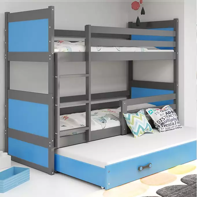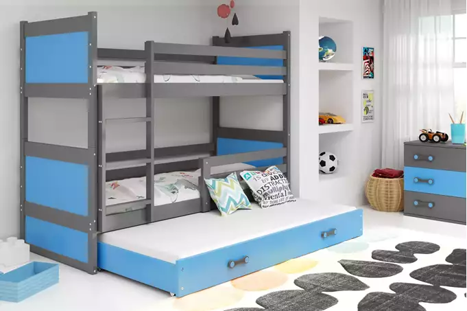 RICO 90X200 trijų asmenų jaunimo lova su stalčiumi, grafito/mėlyna