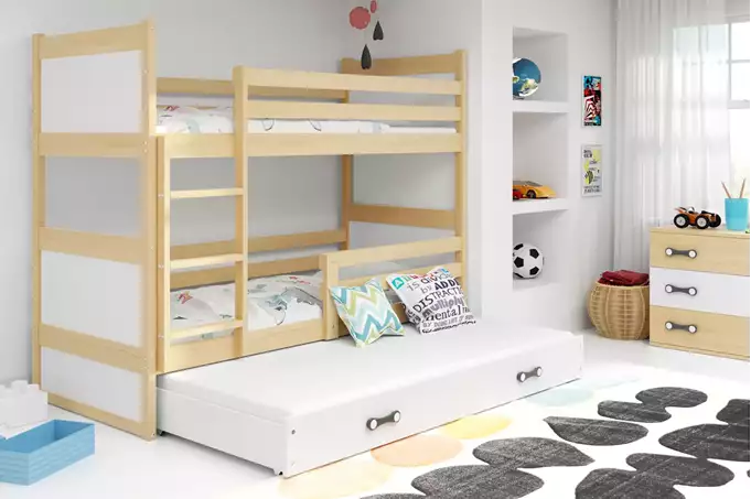 RICO 90X200 trijų asmenų jaunimo lova su stalčiumi, pušis/balta