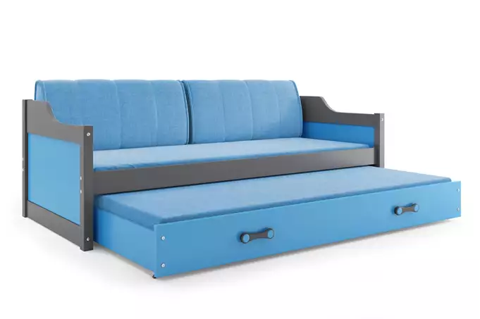 DAWID 90X200 jaunimo išskleidžiama lova su čiužiniu ir stalčiumi, grafito/mėlyna