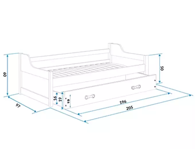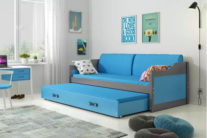 Būkite pirmas aprašęs “DAWID 90X200 jaunimo išskleidžiama lova su čiužiniu ir stalčiumi, grafito/mėlyna”