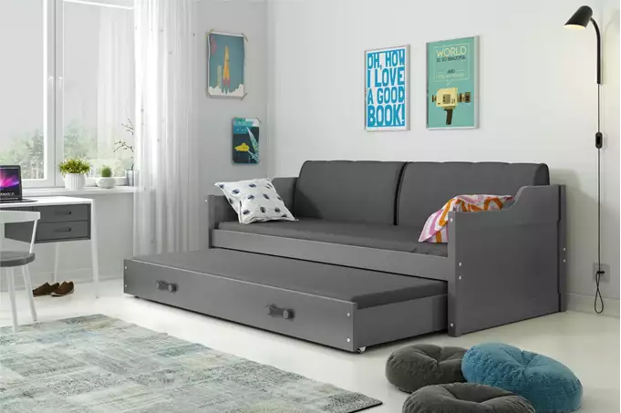 DAWID 90X200 jaunimo išskleidžiama lova su čiužiniu ir stalčiumi, grafito spalvos