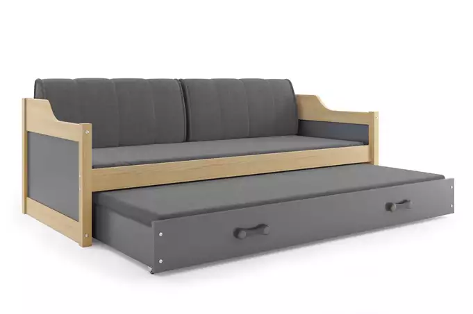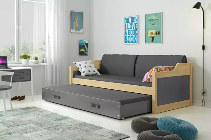 DAWID 90X200 jaunimo išskleidžiama lova su čiužiniu ir stalčiumi, pušis/grafitas
