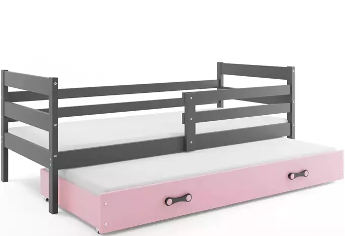 ERYK 80X190 jaunimo išskleidžiama lova su čiužiniu ir stalčiumi, grafito/rožinė