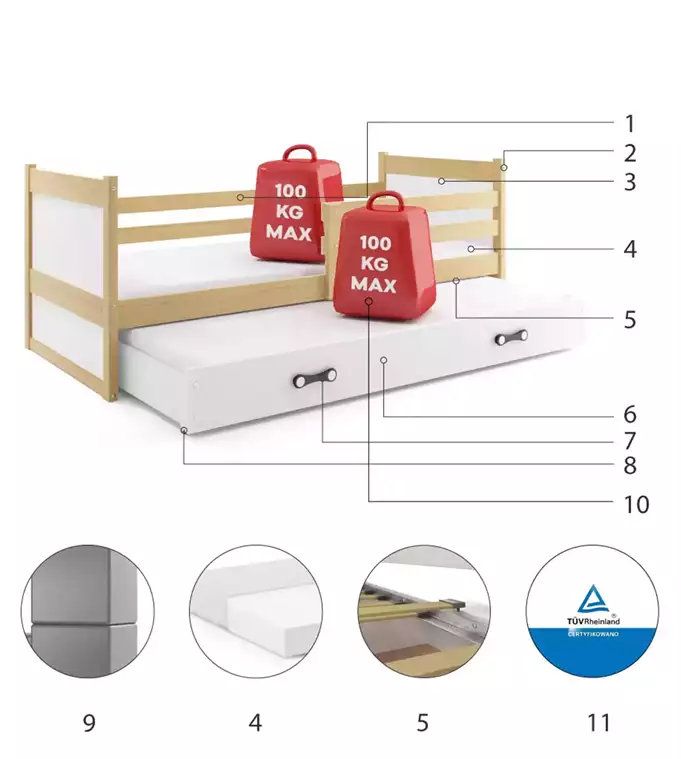 Sertifikuota lova – kokybė ir saugumas atitinka TUV standartus.