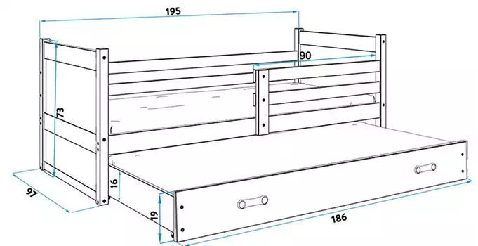 Lovos rėmas – pagamintas iš pušies medienos, dažytas vandens pagrindo laku.