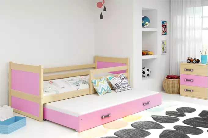Lovos rėmas – pagamintas iš pušies medienos. Surinkimo priedai – greitas ir paprastas surinkimas. MDF plokštė – dažyta vandens pagrindo laku. Čiužiniai – 200×90 (1 vnt.), 190×80 (1 vnt.), su nuimamu užvalkalu, oro kondicionavimo pluoštu ir poliuretano putomis. Užvalkalas – dygsniuotas hipoalerginis audinys, pagamintas iš poliesterio, su užtrauktuku. Rėmas – esame vienintelė įmonė, siūlanti rėmą iš spyruoklinių lentelių, pagamintą iš beržo medienos, pritvirtintą PVC rankena ant metalinės juostelės, su spragtelėjimo sistema (greitas surinkimas). Stalčius – pagamintas iš medžio drožlių plokštės, turi papildomą miegojimo funkciją. Stalčiaus rankena – pagaminta iš PVC. Stalčiaus ratukai. Apvalinimas – spindulys R2. Keliamoji galia – 100 kg kiekvienam lygiui. Sertifikuota lova – kokybė ir saugumas pagal TUV standartus.