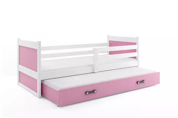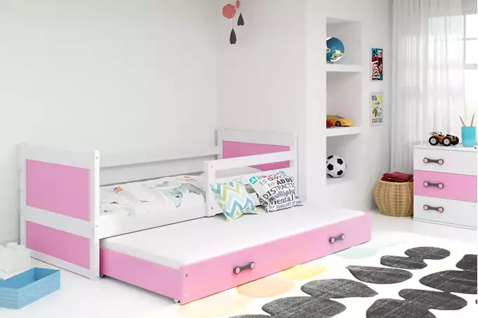RICO 90×200 jaunimo išskleidžiama lova su stalčiumi, balta/rožinė