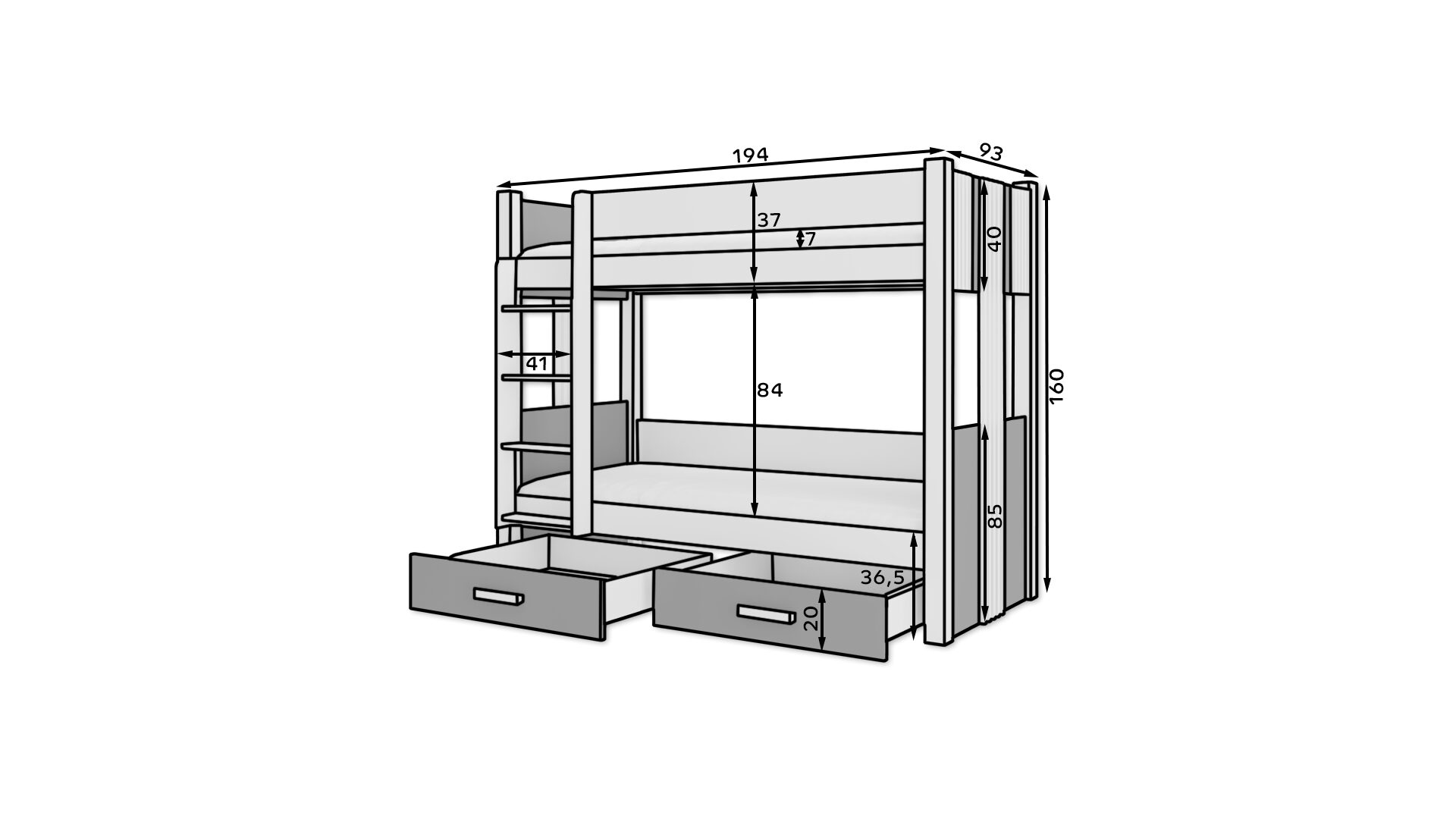 Dviaukštė lova ARTA – puikus būdas sutaupyti vietos mažame vaikų kambaryje. Joje yra kopėtėlės ir du erdvūs bei funkcionalūs stalčiai patalynei. Prie lovos pridedamas ir putų poliuretano čiužinių komplektas.
