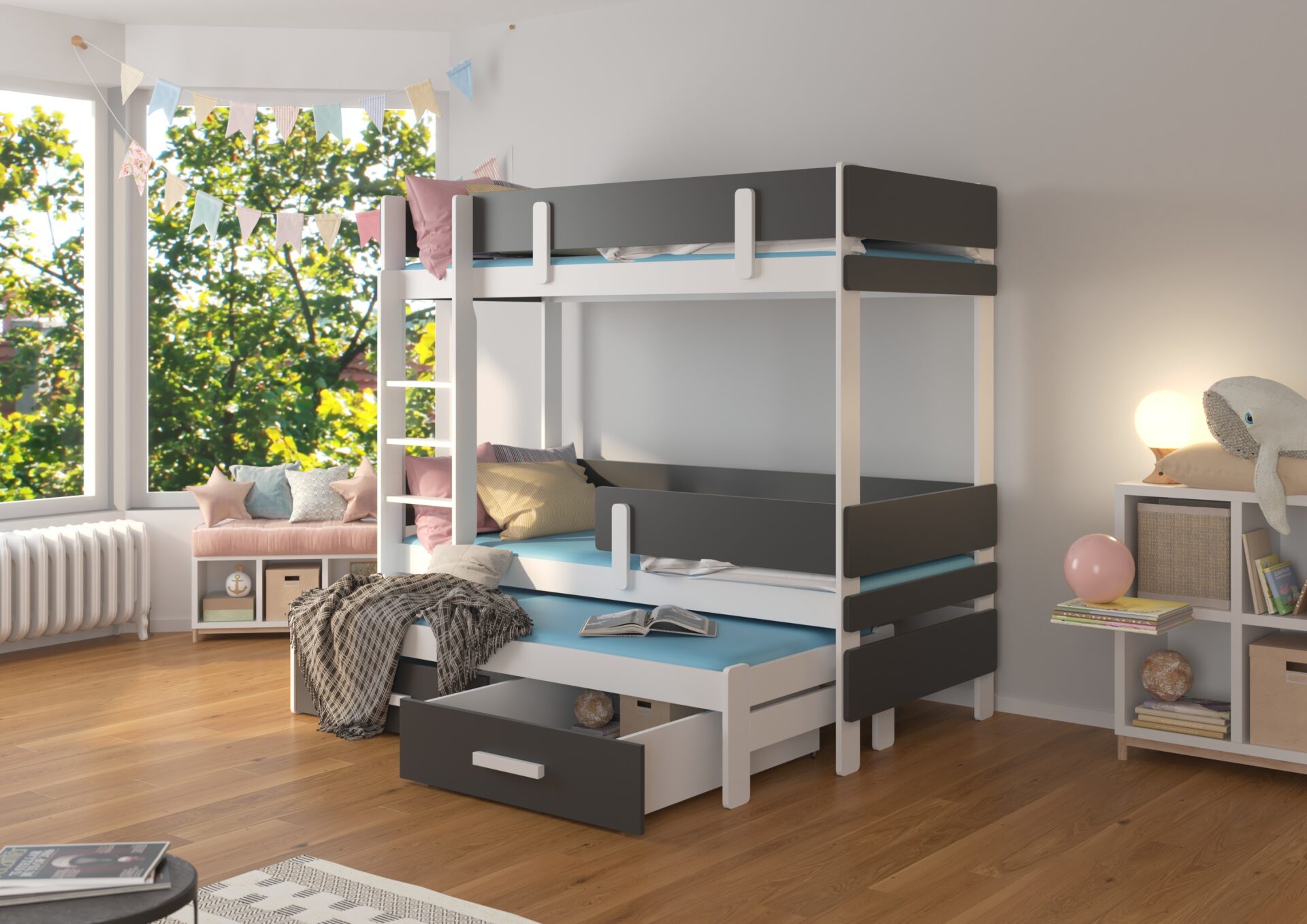ETAPO trivietė dviaukštė lova 180×80 balta/antracito spalvos ADRK