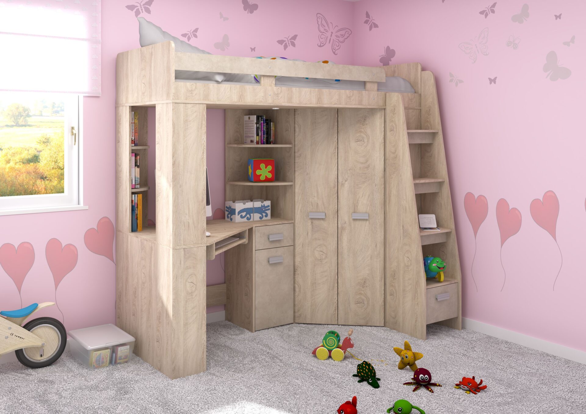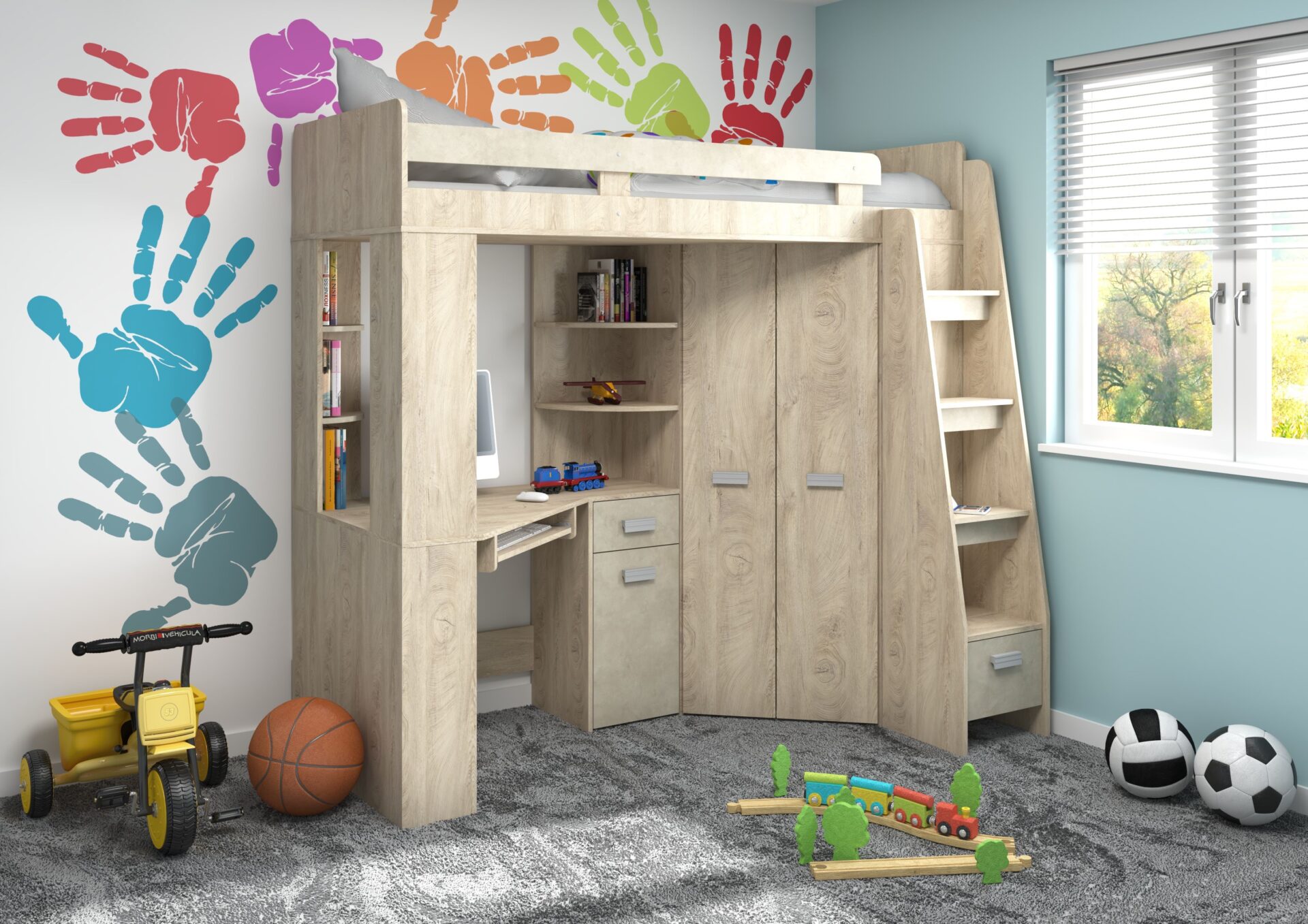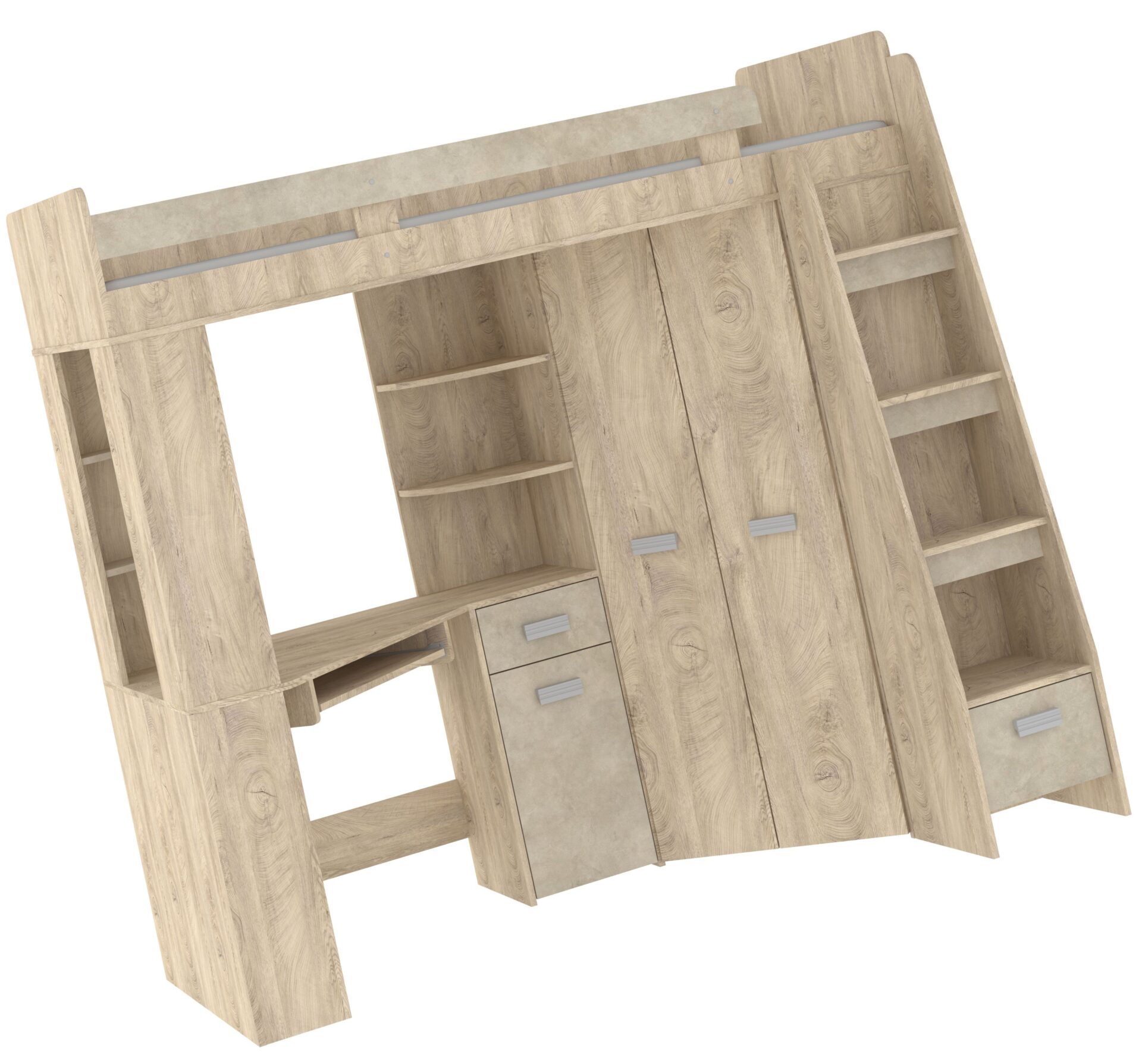 SOLA P antresolė be čiužinio 80×200, 16 mm plokštė, ABS kraštas, maksimalus čiužinio aukštis 10 cm, spalva: ąžuolo imitacija / granados migdolų imitacija