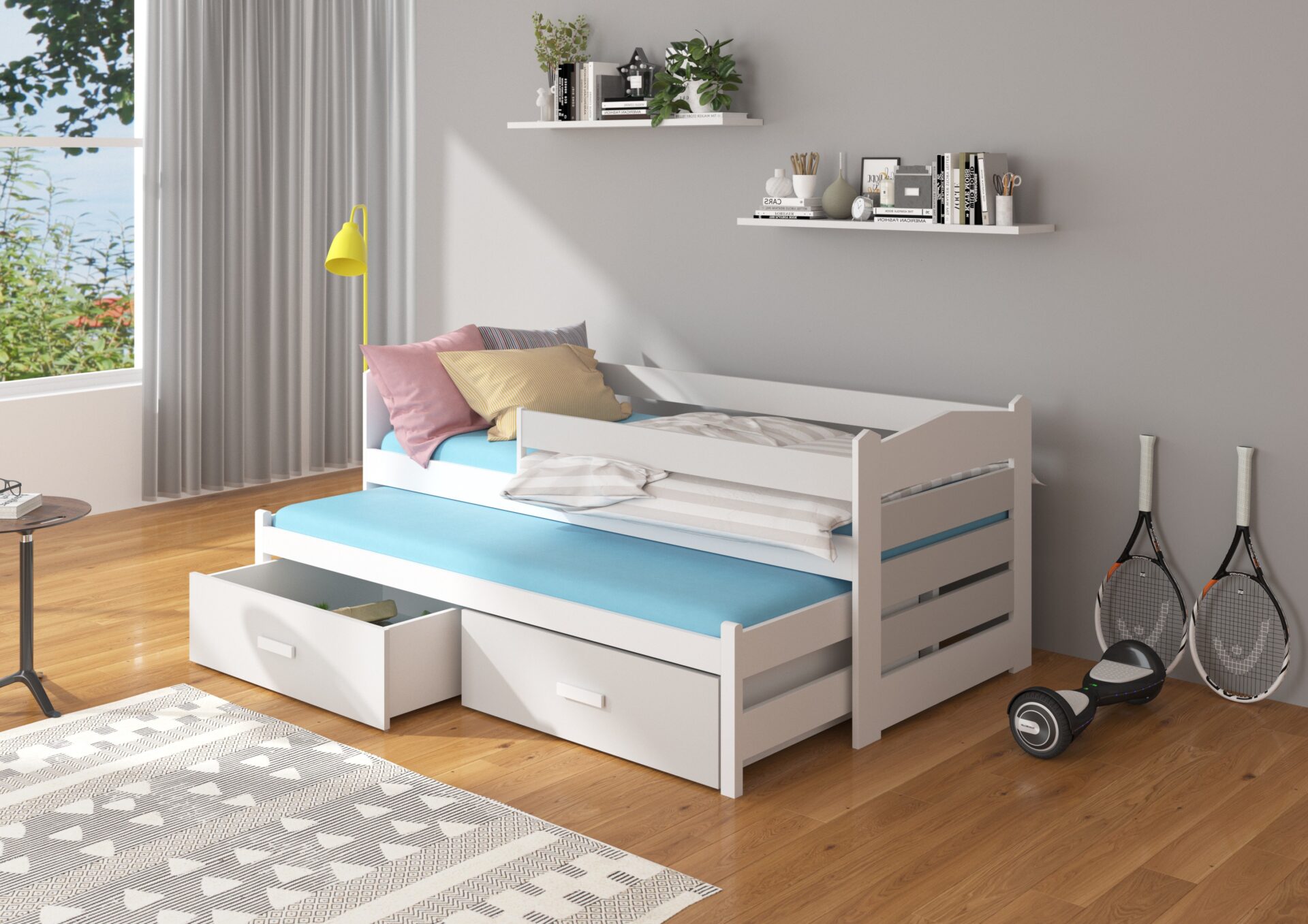 Dvigulė lova „TIARRO“ su apsauginiu turėklu – puikus sprendimas kambariui su dviem broliais ir seserimis. Ji taip pat puikiai tinka netikėtiems svečiams. Lova yra dviejų dydžių ir įvairių spalvų, kad derėtų prie bet kokio interjero, turi du praktiškus ir funkcionalius stalčius patalynei ir patvarų, tvirtą pušies medienos rėmą. Siekiant didesnio saugumo, modelyje yra papildomas apsauginis turėklas, apsaugantis nuo kritimų. Čiužiniai į komplektą neįeina.