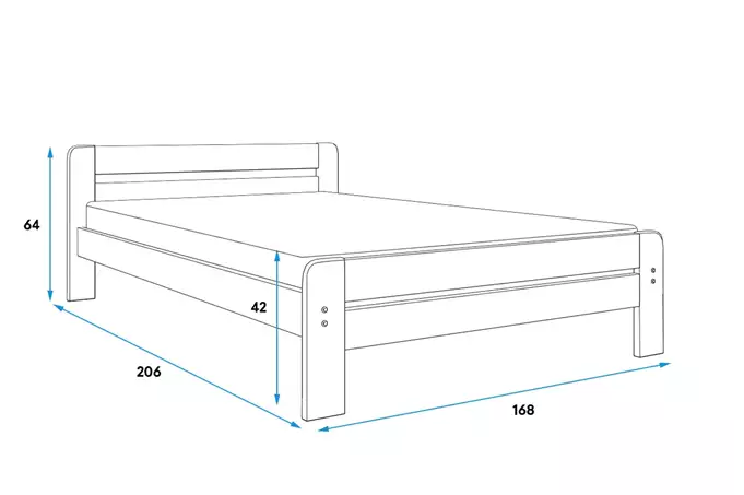 Lovos rėmas – pagamintas iš pušies medienos, dažytas vandens pagrindo laku. Surinkimo priedai – greitas ir paprastas surinkimas. Čiužiniai – 200x80x9 dydžio (2 vnt.), su nuimamu užvalkalu, oro kondicionavimo pluoštu ir poliuretano putomis. Užvalkalas – dygsniuotas hipoalerginis audinys, pagamintas iš poliesterio, su užtrauktuku. Rėmas – esame vienintelė įmonė, siūlanti rėmą iš spyruoklinių lentelių, pagamintų iš beržo medienos, tvirtinamų PVC laikikliu ant metalinės juostelės, su spragtelėjimo sistema (greitas surinkimas). Maksimali apkrova – 160 kg. Apvalinimas – spindulys R2.