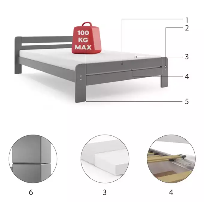 DALLAS 90X200 miegamojo lova su čiužiniu, grafito spalvos