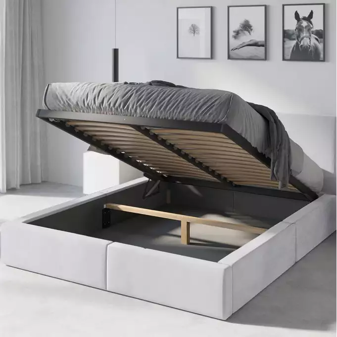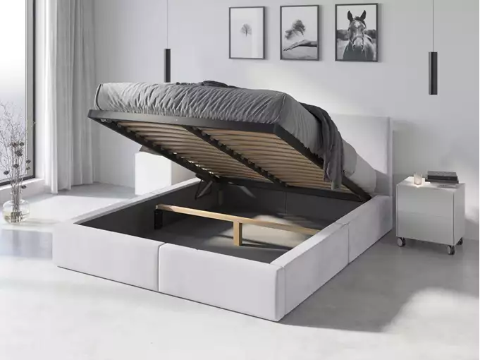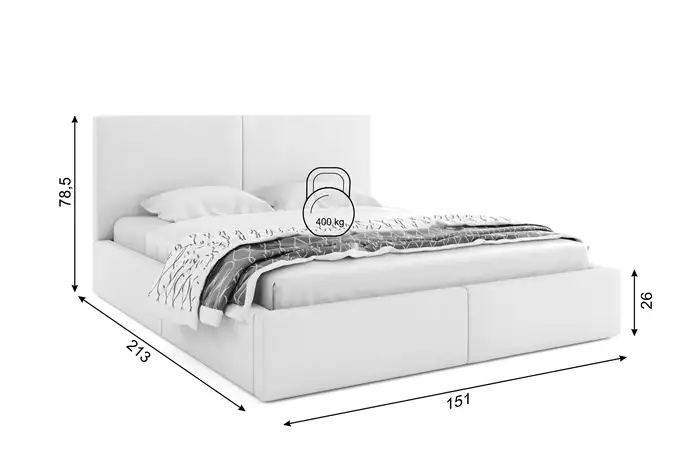 HILTON 140X200 minkšta miegamojo lova su čiužiniu ir daiktadėže, balta