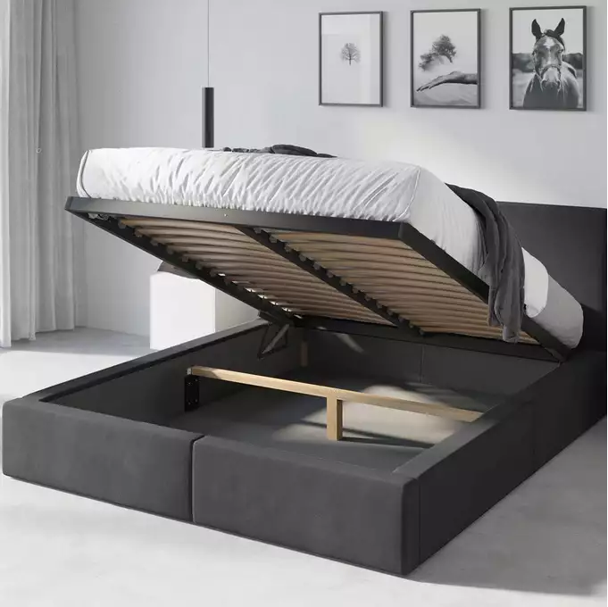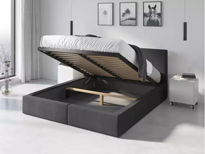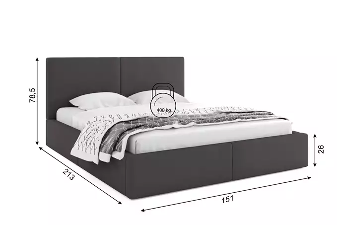 Konstrukcija pagaminta iš aukštos kokybės laminuotos plokštės, pasižyminčios patvarumu ir lengvu valymu. Viršus ir rėmas – apmušti. Apmušalų medžiaga – jos būdingas bruožas – subtili struktūra ir paviršius, padengtas smulkiu pūku, atsparus trinčiai, pumpuravimuisi ir šviesai. Medžiaga pasižymi ribotomis skysčių sugėrimo savybėmis, o tai teigiamai veikia jos švarą. Surinkimo priedai – greitas ir paprastas surinkimas. Metalinis rėmas: tvirtinamas ant dviejų metalinių spyruoklinių mechanizmų, susidedančių iš 30 tvirtų beržo smūgius sugeriančių lentelių, pritvirtintų prie metalinės konstrukcijos. Daiktadėžė daiktams laikyti. Čiužinys – 140x200x9 dydžio, su nuimamu užvalkalu, oro kondicionavimo pluoštu ir poliuretano putomis. Užvalkalas – dygsniuotas hipoalerginis audinys, pagamintas iš poliesterio, su užtrauktuku. Maksimali apkrova – 400 kg.