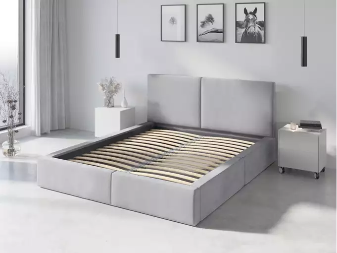 Techninės specifikacijos: Konstrukcija pagaminta iš aukštos kokybės laminuotos plokštės, pasižyminčios patvarumu ir lengvu valymu. Galvūgalis ir rėmas yra apmušti. Apmušalų medžiaga pasižymi subtilia struktūra ir smulkiai pūkuotais paviršiais, atspari trinčiai, pumpuravimuisi ir šviesai. Medžiaga mažai sugeria skysčius, o tai teigiamai veikia jos švarą. Surinkimo priedai: greitas ir paprastas surinkimas. Rėmas: sudarytas iš 32 tvirtų beržo lentelių, pritvirtintų prie medinės konstrukcijos. Maksimali rėmo apkrova: 400 kg. Čiužinys: neįskaičiuotas. Lova neturi daiktadėžės.