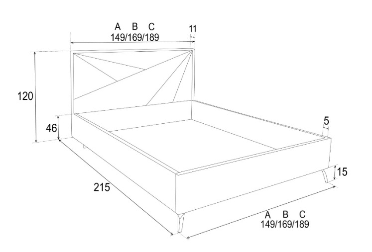 – Patalynei skirta vieta: 139 / 159 / 179 x 200 x 17 cm