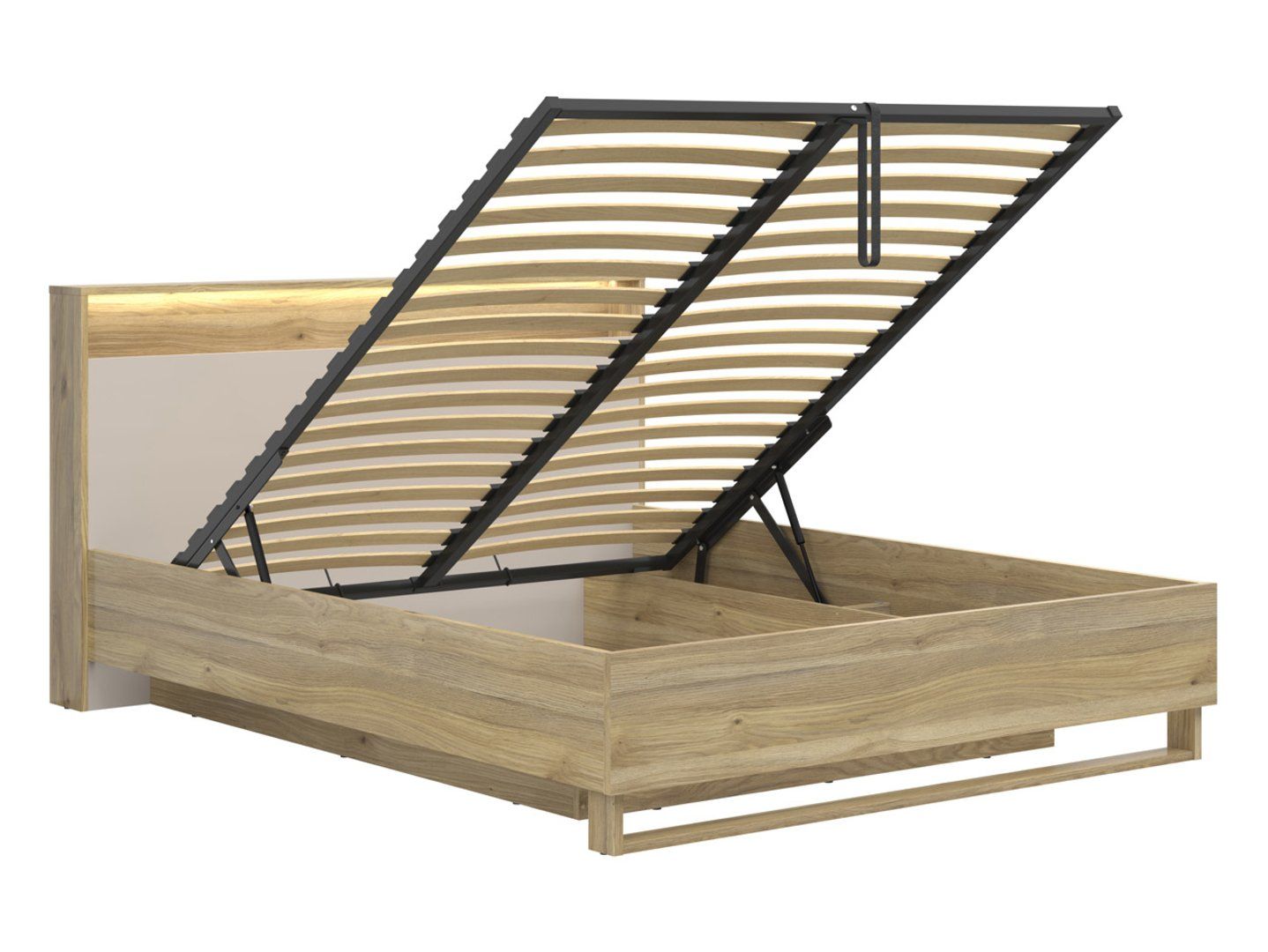 „Dalva“ lova – japoniško stiliaus harmonija jūsų miegamajame. Patogumas ir funkcionalumas. „Dalva“ lova sukurta užtikrinti ramų ir patogų miegą. Erdvi patalynės dėžė, lengvai pasiekiama dėl dujinio pakėlimo mechanizmo, siūlo praktiškus sprendimus kasdieniam naudojimui. 160 × 200 cm miegojimo paviršius (čiužinys parduodamas atskirai) garantuoja stabilią atramą ir patogų poilsį. Praktiški sprendimai. Įspūdingas galvūgalis su įmontuotu LED apšvietimu ir USB prievadu suteikia patogią aplinką vakare skaityti ar naudotis mobiliaisiais įrenginiais. Apšviesta lentyna galvūgalyje leidžia laikyti būtiniausius daiktus, tokius kaip knygos, akiniai ar telefonas, po ranka. Dizainas ir stilius. „Dalva“ lova žavi savo japonišku stiliumi – japoniško paprastumo ir šiaurietiško funkcionalumo deriniu. „Mauvella“ ąžuolo ir kašmyro derinys sukuria harmoningą ir elegantišką visumą, įnešančią į miegamąjį ramybės ir šilumos. „Dalva“ kolekcijoje taip pat yra spinta, komoda ir naktiniai staleliai, leidžiantys sukurti darnų interjero dizainą. Savybės: Miegamasis plotas: 160 × 200 cm (čiužinys parduodamas atskirai), LED galvūgalis su USB jungtimi, apšviesta lentyna galvūgalyje, dujinis pakėlimo rėmas, patalynės skyrius papildomam daiktų laikymui, spalvos: ąžuolo ir kašmyro pilka spalva, japandi stilius – paprastumo ir funkcionalumo derinys. Santrauka: „Dalva“ lova yra modernus ir funkcionalus miegamojo sprendimas, kuriame derinamas komfortas ir rafinuotas dizainas. Su apšviestu galvūgaliu su USB jungtimi, patalynės skyriumi ir elegantišku japandi stiliumi ji taps jūsų interjero širdimi.