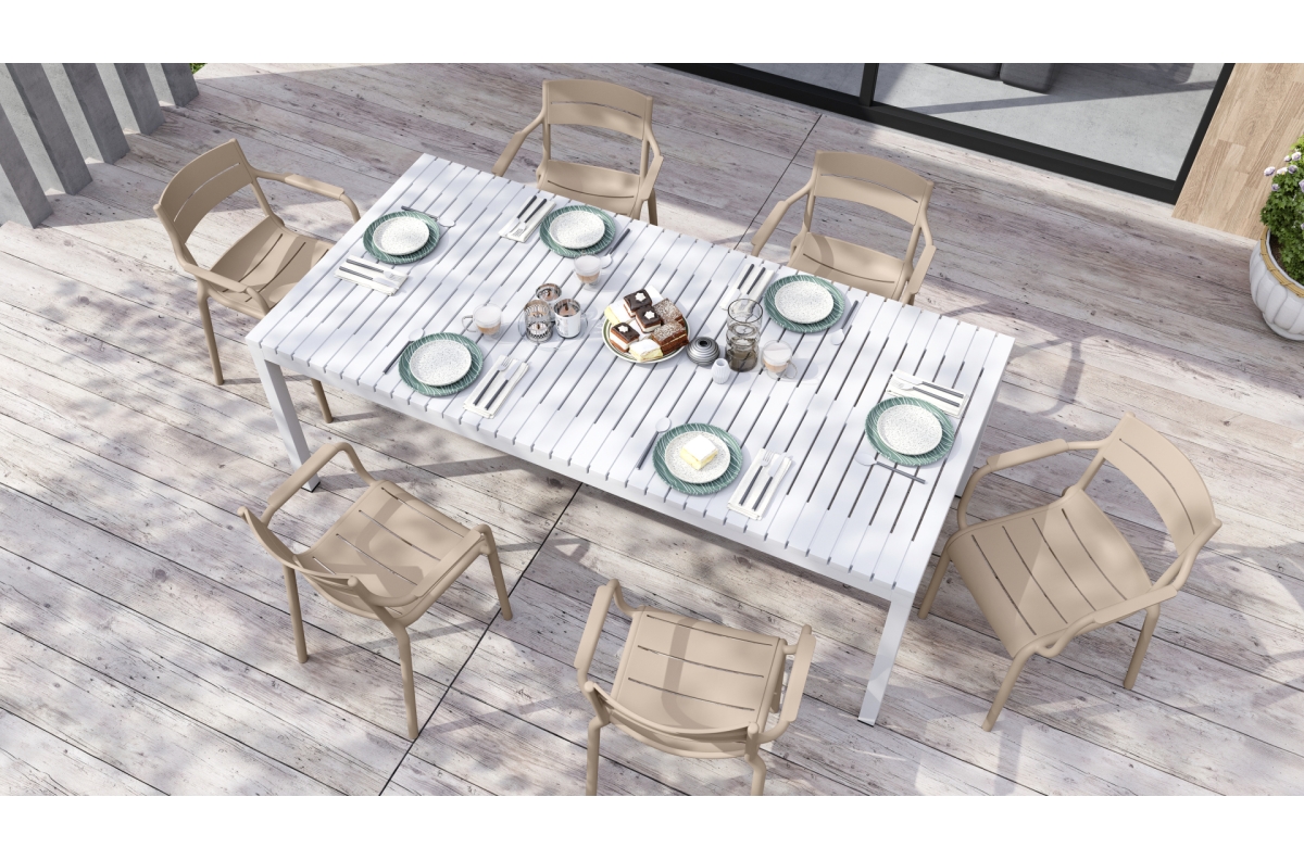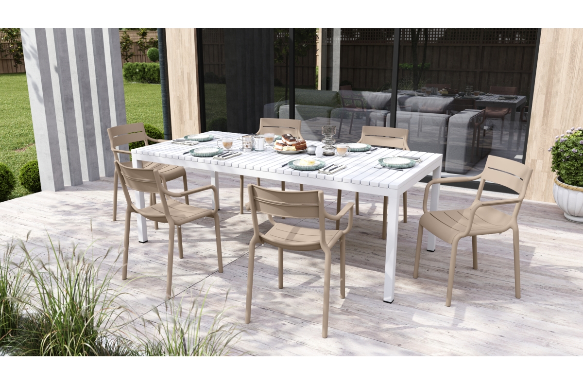 LUSSO Beige – MODERNI PLASTIKINĖ SODO KĖDĖ (virtuvėje, kavinėje, sode) [SUDEDAMA VIENĄ KARTĄ]