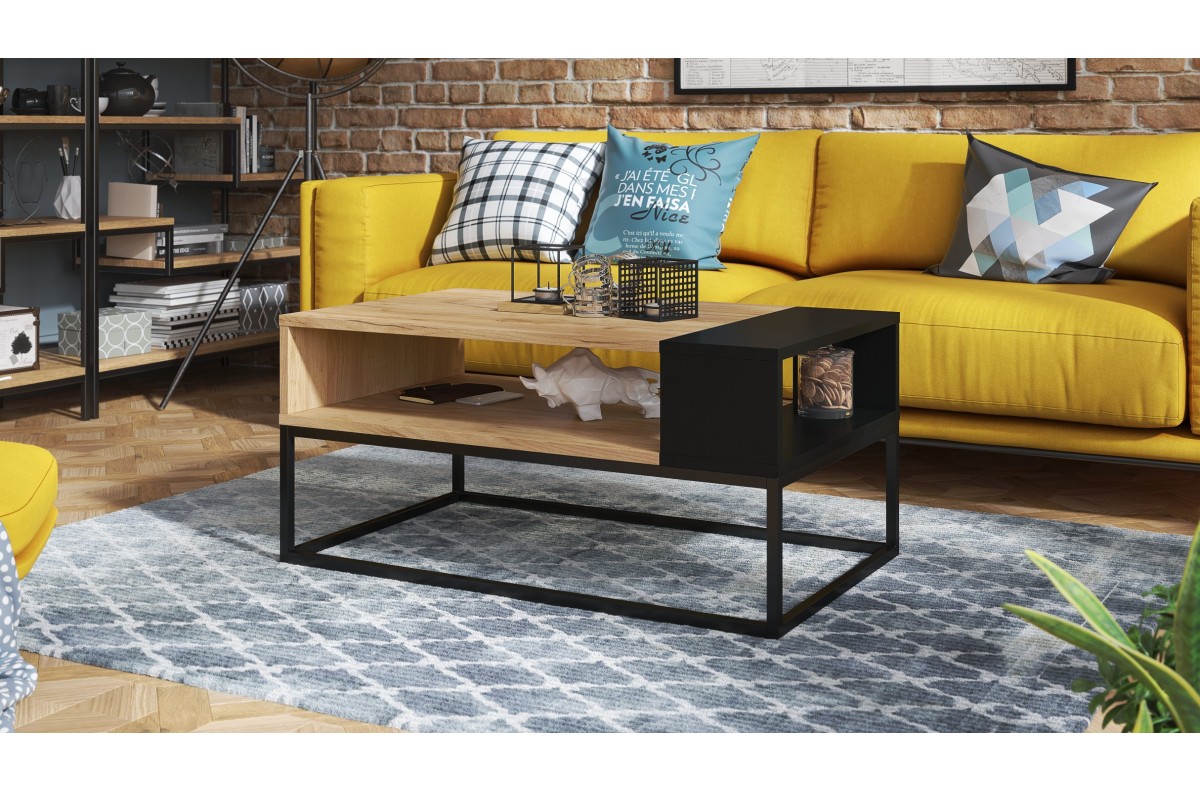 LYNX Craft ąžuolo aukso/matinės juodos spalvos – MODERNUS LOFT kavos staliukas