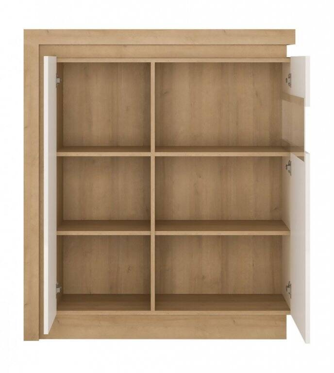 Kviečiame apžiūrėti mūsų naujausią pasiūlymą – žemą, dvidurę vitriną „Lyon LYOV04P“, kurios atspalviai – šviesus „Riviera Oak“ ir klasikinė balta. Ji išsiskirs bet kuriame interjere ir suteiks jai modernumo. Šis baldas puikiai tiks išrankiems klientams, ieškantiems funkcionalumo ir subtilios elegancijos derinio. Jo matmenys – plotis 107,5 cm, aukštis 123,6 cm, gylis 42 cm – derinami su gerai apgalvotu dizainu. Tvirta konstrukcija, pagaminta iš aukštos kokybės laminuotos plokštės, garantuoja ilgaamžiškumą ir atsparumą kasdieniam naudojimui. Medžiaga atspari įbrėžimams, mechaniniams pažeidimams, drėgmei ir aukštai temperatūrai, todėl šis baldas idealiai tinka tiek funkcionaliems, tiek reprezentatyviems namų kampeliams. Vitrinos žavesį sustiprina moderni sistema be rankenėlių, kuri kartu su švelniai užsidarančiais vyriais užtikrina patogų ir tylų veikimą. Be to, elegantiška vitrinos priekinė ir šoninė dalys papuoštos grūdintu „Antisol“ stiklu, kuris apsaugo turinį nuo per didelių saulės spindulių.