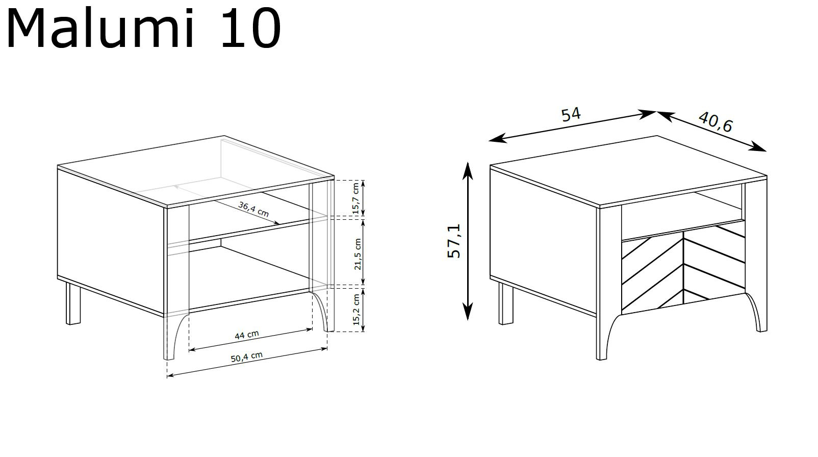 Atraskite MALUMI-10 naktinį staliuką, kuris neabejotinai pakeis jūsų miegamąjį, suteikdamas jam modernaus stiliaus ir elegancijos. Pagaminta iš aukštos kokybės medžiagų, ši vienų durų spintelė iš kašmyro žavi ne tik savo estetika, bet ir funkcionalumu. Minimalistinis dizainas ir dekoratyvinis „eglutės kaulo“ rašto priekis paverčia ją tikru bet kokio interjero akcentu. Naktinio staliuko viduje yra erdvi lentyna ir atvira niša, puikiai tinkanti knygoms, naktinei lempai ar kitiems būtiniausiems daiktams laikyti. Kad viskas būtų tvarkingai ir lengvai pasiekiamu atstumu, MALUMI-10 yra puikus pasirinkimas tiems, kurie vertina komfortą ir stilių. Tvirta konstrukcija garantuoja ilgaamžiškumą, o švelniai užsidarančios durelės – puikus sprendimas ramioms naktims. Matinės juodos spalvos elegancija kartu su kašmyro spalva leidžia spintelei puikiai tinka įvairiems interjerams. Nesvarbu, ar kuriate modernią, skandinavišką, ar klasikinę erdvę, MALUMI-10 yra universalus sprendimas, kuris suteiks stiliaus ir rafinuotumo. Dėl estetikos ją lengva derinti su kitais interjero dizaino elementais, sukuriant harmoningą atmosferą.