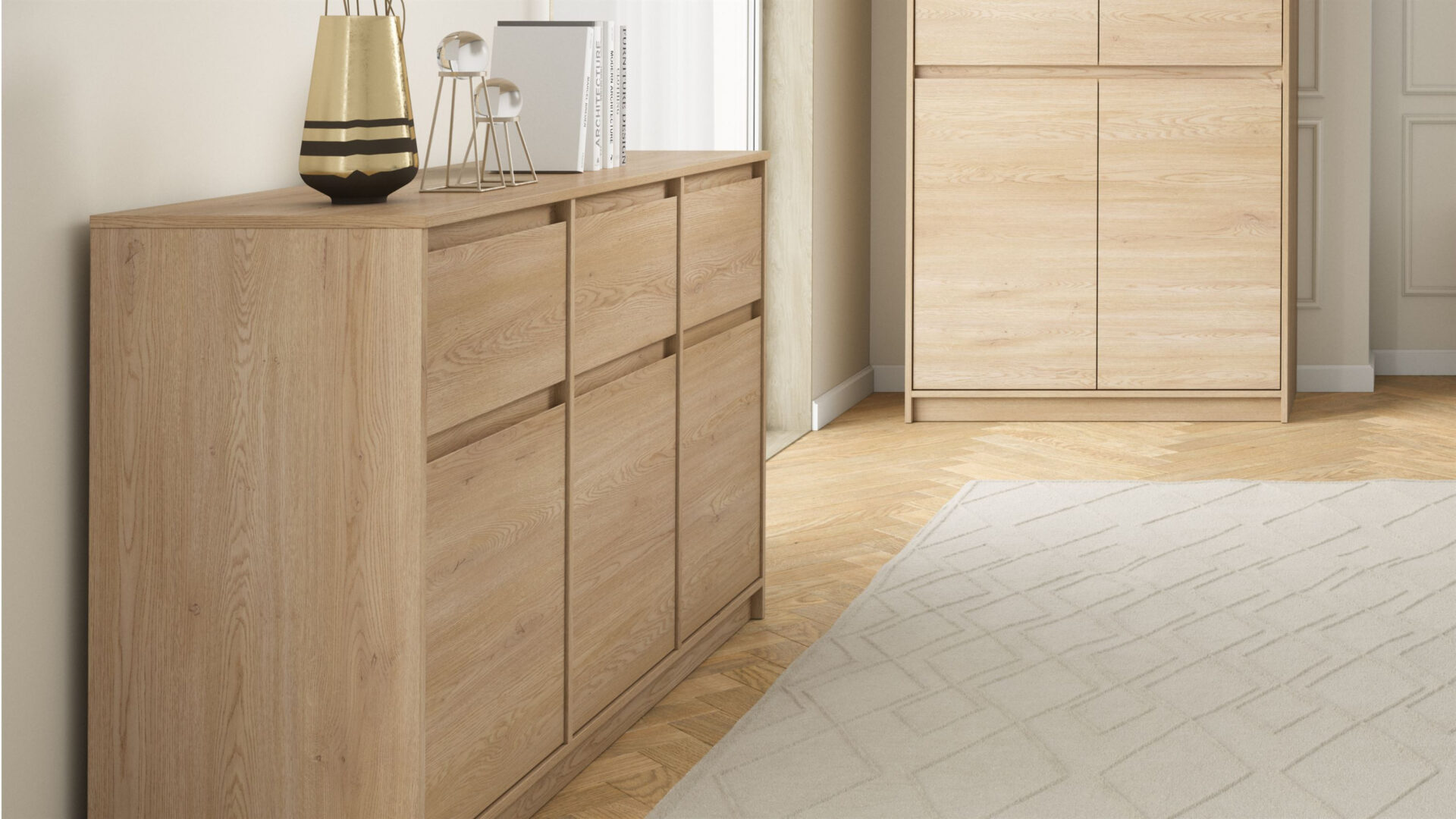 Atraskite eleganciją ir modernumą savo interjere su „Manami K3SW“ komoda – išskirtiniu stiliumi ir funkcionalumu pasižyminčiu dizainu. Dėl plono silueto, vos 47 cm pločio, ji puikiai tinka mažesnėms erdvėms, tokioms kaip prieškambaris, miegamasis ar biuras. „Cremona“ spalva suteikia jai šiltą ir jaukų charakterį, kuris sklandžiai dera su įvairiais interjero dizainais. Kai stilius susitinka su praktiškumu, sukuriama kažkas ypatingo. Ši komoda sukurta galvojant apie maksimalų patogumą – trys erdvūs stalčiai suteikia daug vietos daiktams susidėti, todėl galite tvarkingai laikyti visus savo daiktus. Be to, novatoriška sistema be rankenėlių ir kampuoti fasadai leidžia ja naudotis ir patogiai, ir estetiškai. Pagaminta iš laminuotos plokštės, „Manami K3SW“ komoda pasižymi ne tik elegantiška išvaizda, bet ir dideliu atsparumu pažeidimams, užtikrinančiu jos patvarumą ir ilgaamžiškumą. Namų surinkimas tampa malonumu, o šiuolaikiškas dizainas prisitaiko prie jūsų gyvenimo būdo.