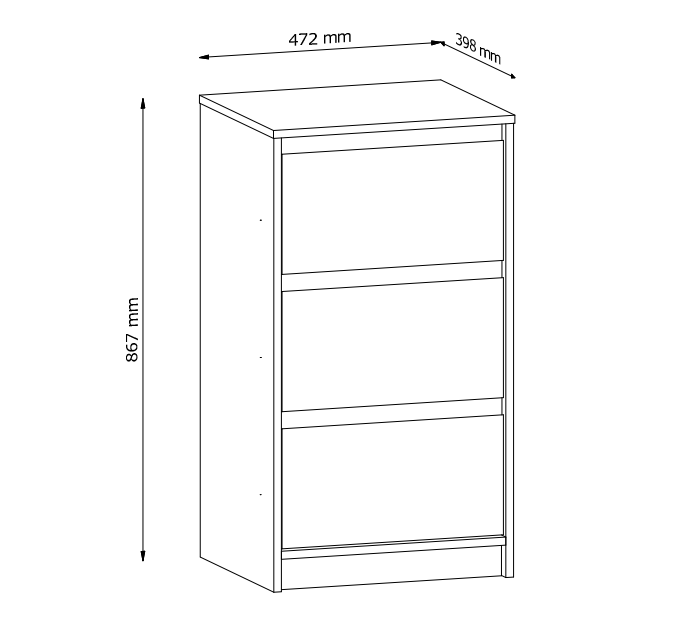 Manami K3SW – Siaura komoda su 3 stalčiais, Cremona