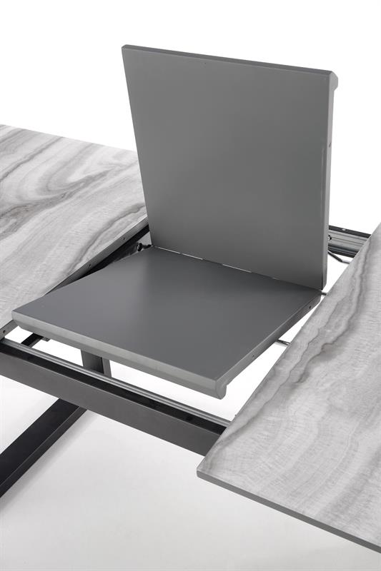 MARLEY prailginamas stalas, spalva: stalviršis – baltas marmuras / pilka, kojos – juodos