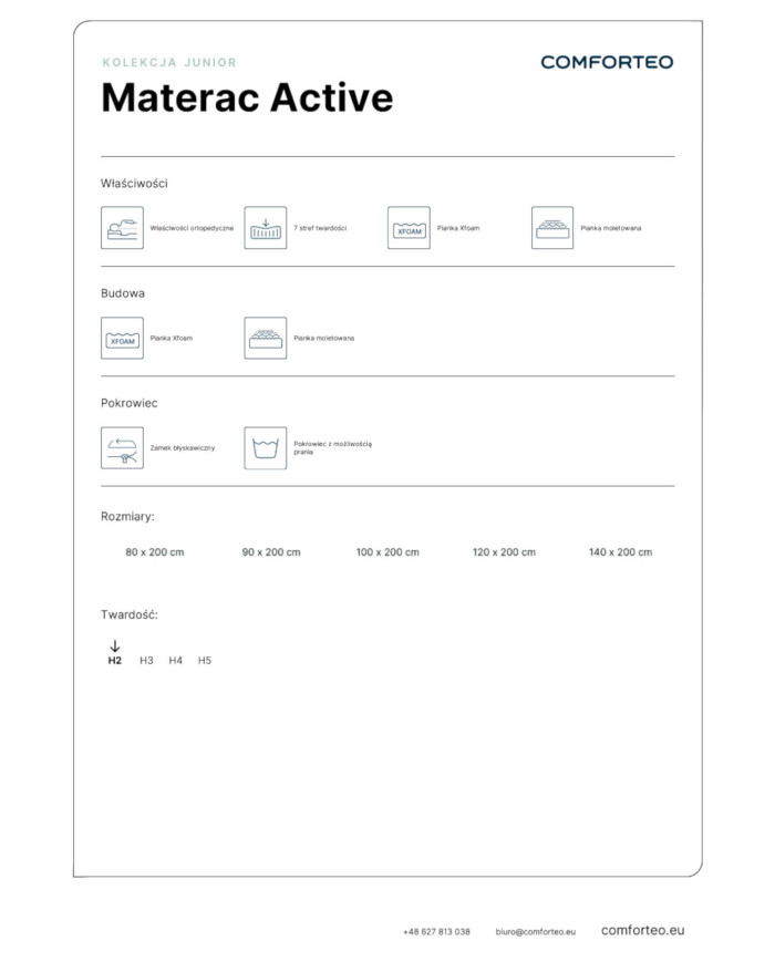 Aktyvus čiužinys, 140×200 cm, dvipusis, putų poliuretanas, nuimamas užvalkalas, H2, Comforteo