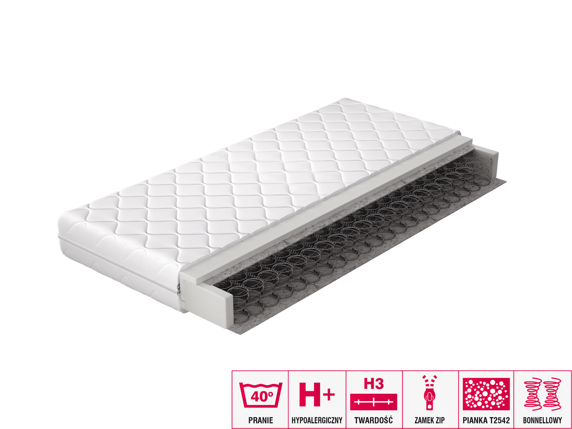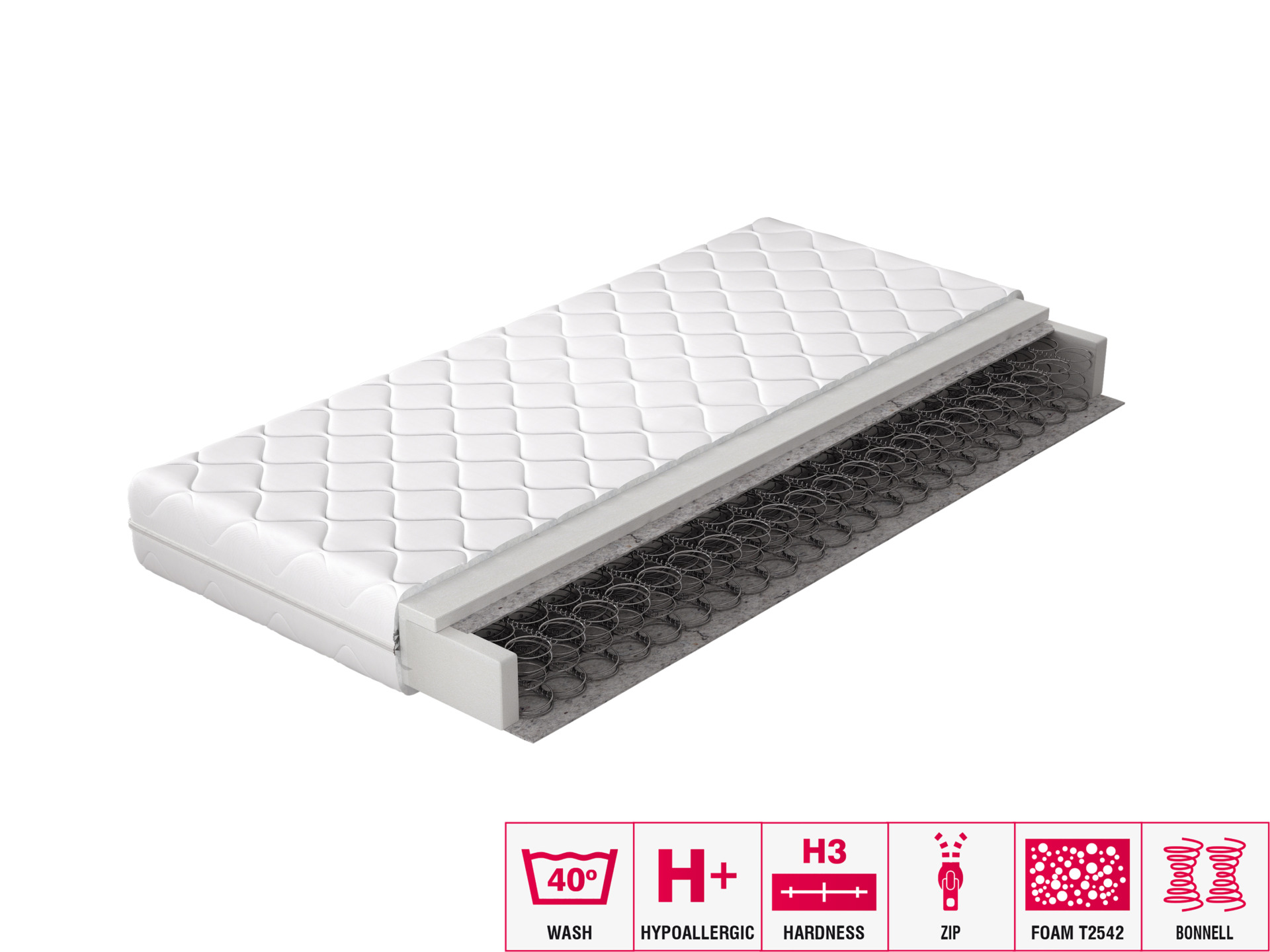 Puikiai parinktas čiužinys – gero nakties miego garantija. Žinome, koks svarbus šis pasirinkimas, todėl pristatome OMINI Bonnell spyruoklinį čiužinį. Bonnell spyruoklinė sistema užtikrina, kad čiužinys laikui bėgant nesideformuos, o tai labai svarbu miego komfortui. Bonnell spyruoklinė sistema padengta veltinio pagalvėle, kuri papildomai užpildyta T2542 putomis. Visa tai apgaubta nuimamu užvalkalu.
