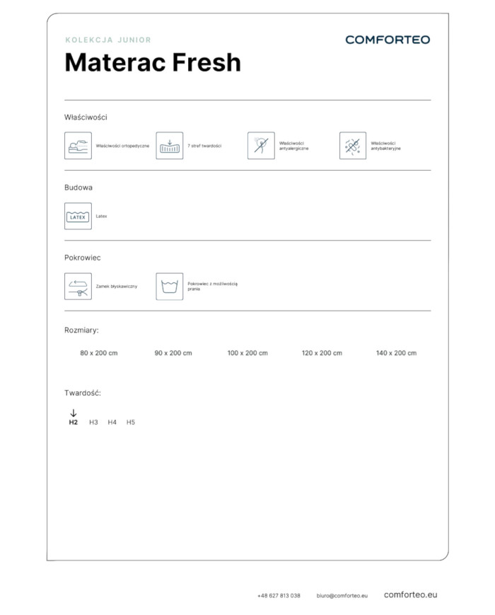 Čiužinys „Fresh“, 100×200 cm, dvipusis, putplastis, lateksas, nuimamas užvalkalas, H2, Comforteo