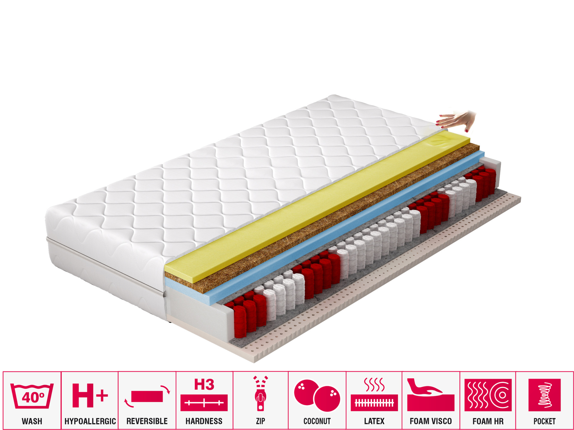 Patogus nakties miegas yra raktas į sėkmingą dieną, todėl suprantame, kaip svarbu pasirinkti tobulą čiužinį pagal savo poreikius. ’Sola“ termoelastinis čiužinys yra puikus pasirinkimas tiems, kurie vertina gerą nakties miegą. „Sola“ čiužinys susideda iš kišeninių spyruoklių, kurios neleidžia čiužiniui banguotis ar vibruoti, ir trijų tipų putų. Vienoje pusėje yra latekso putos, kitoje – didelio elastingumo HR putos ir „Visco“ putos, atskirtos kokoso pluošto plokšte, kuri padidina čiužinio kietumą. Viską užbaigia nuimamas užvalkalas.