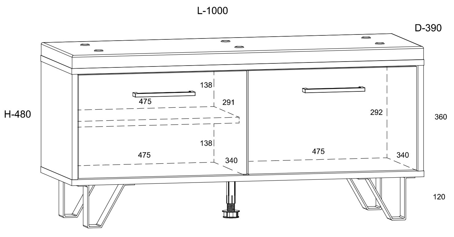 Baldai pagaminti iš 16 mm storio medžio drožlių plokštės su ABS kraštais ir 12 cm metalinėmis kojelėmis. Stalčiai ir durelės turi švelnaus uždarymo sistemą.