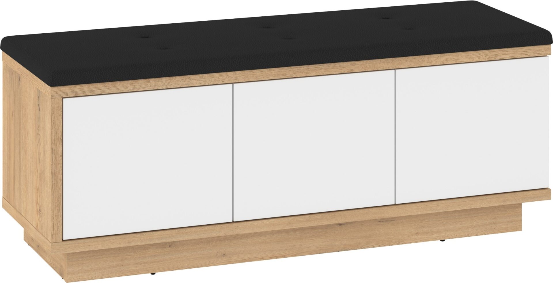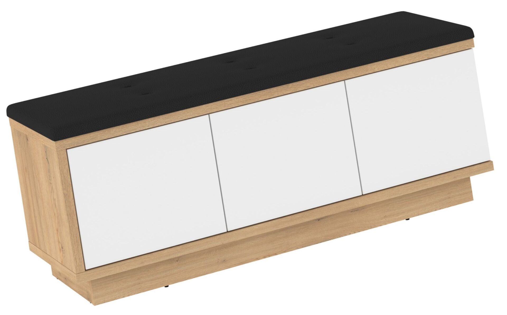 BRITA 02 prieškambario spintelė su sėdyne, kremonos ąžuolas, balta blizgi spalva