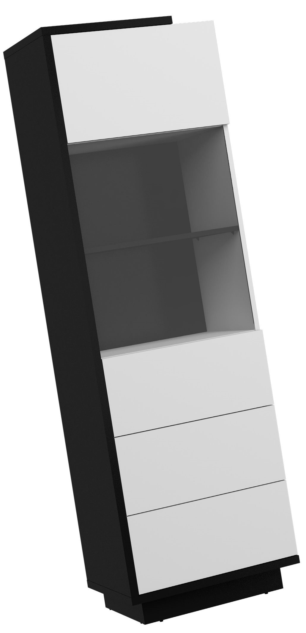 BRITA 27 baldai, aukšta vitrina svetainei, juodai balta blizgi
