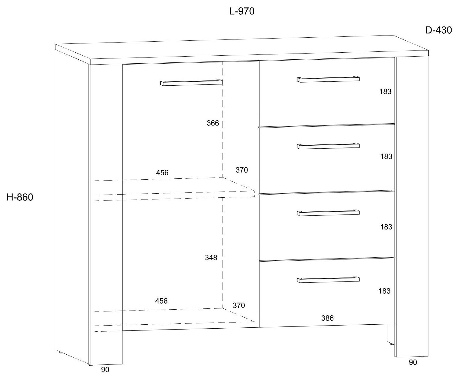 DELIS 02 komoda su durelėmis ir stalčiais svetainei. 16 mm ir 25 mm plokštė, ABS kraštas, švelnaus uždarymo sistema, PILNAI ATIDARYTOS bėgelės. Spalva: Artisan ąžuolas / juoda.